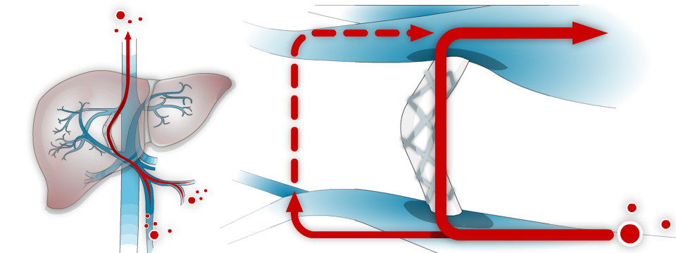 TIPS (a shunt used to decrease pressure in the portal vein)