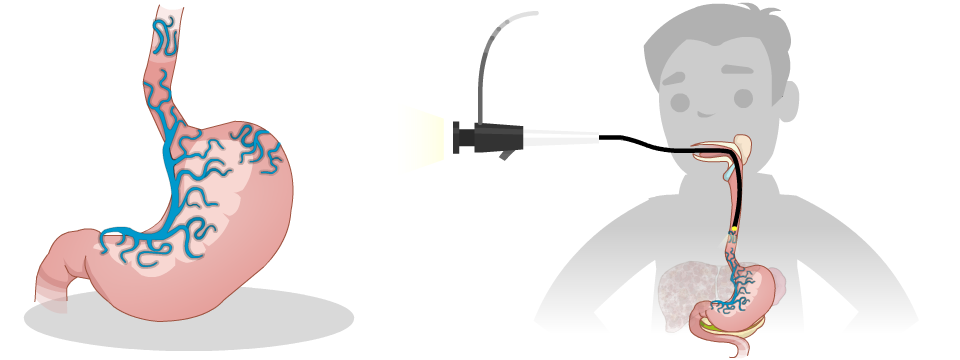 Your healthcare team will look at the results of your blood and other tests to determine your risk of having varices. If you are at higher risk, your healthcare team may want you to have a procedure called an upper endoscopy (gastroscopy). An upper endoscopy involves inserting a tiny camera through your mouth to look down into your esophagus and into your stomach. If you have varices, they can be tied off with tiny rubber bands during the procedure (called banding).