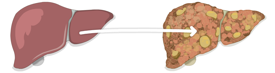 There are many things that can cause damage to the liver, like too much alcohol or fat, and conditions related to genes and the immune system. When something damages the liver, scar tissue begins to form. This scarring is called fibrosis. When the entire liver is scarred, it shrinks and gets hard. This is called cirrhosis.
